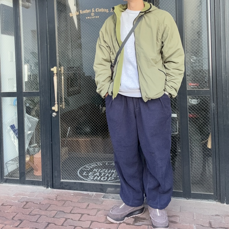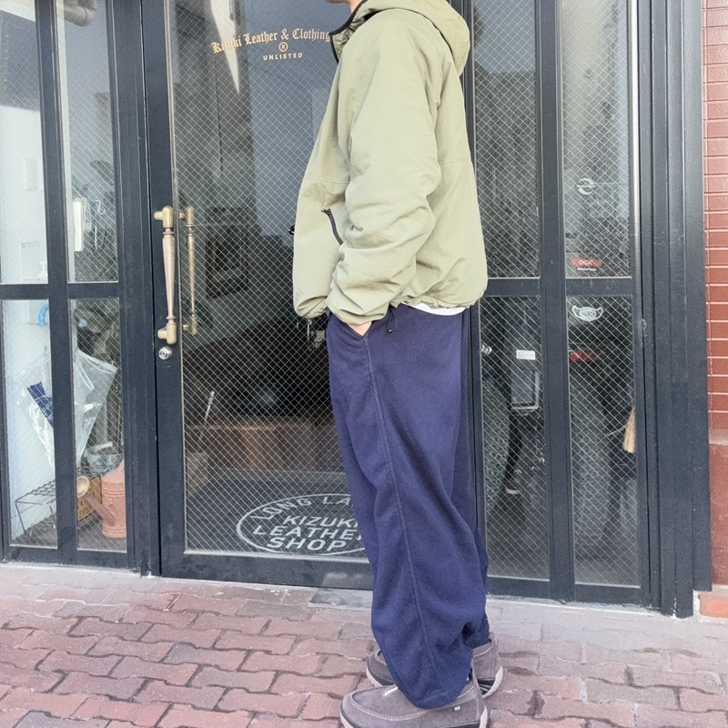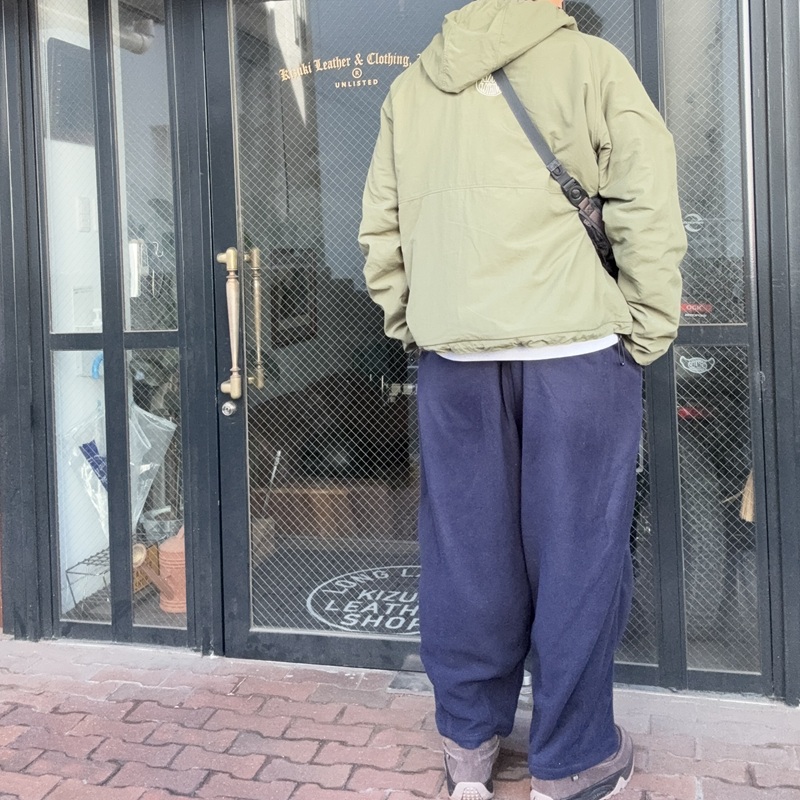 少し大きめのサイジングですが、裾のドローコードを調整できますので、いつも通りのサイジングでゆったりと着用していただくのがおすすめです。