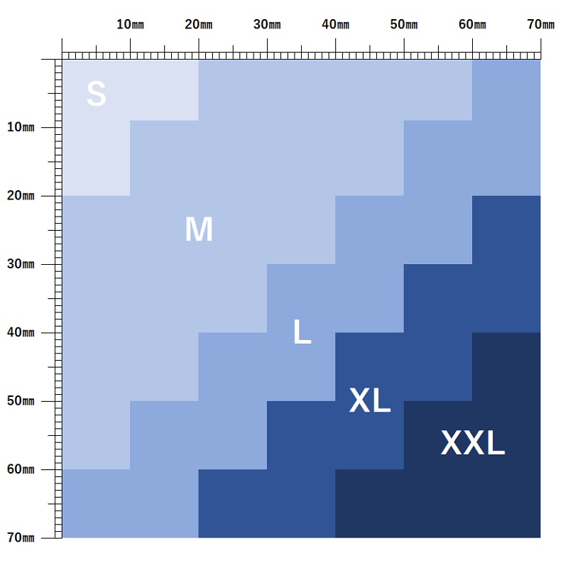 サイズはS~XXL(最大7cm×7cm)までございます。