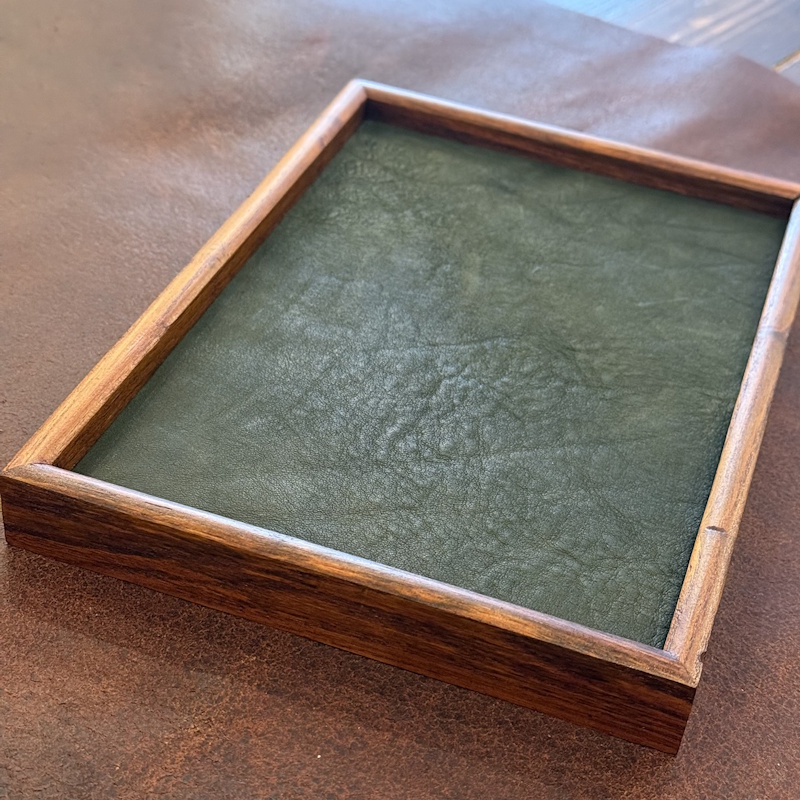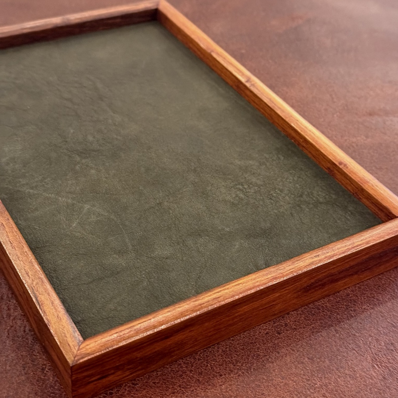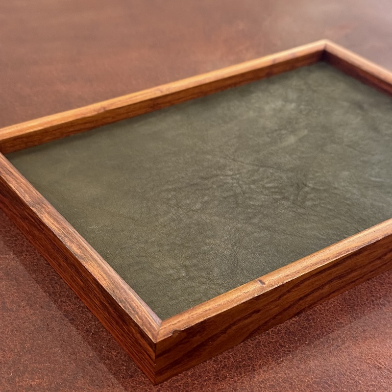 天然木と4mm厚のオイルドグレインレザーで仕上げたアクセサリートレーとなります。ウォッチトレーとしても大変おすすめです。