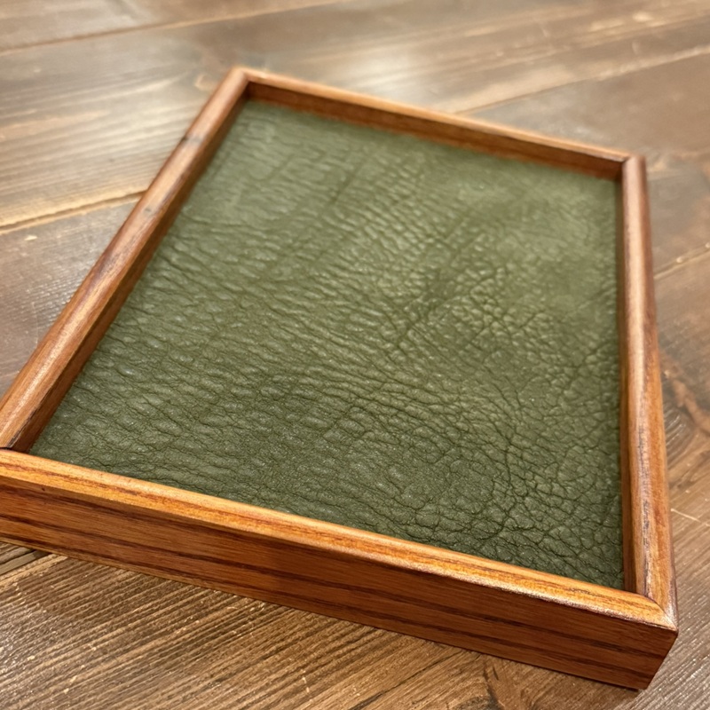 天然木と4mm厚のオイルドグレインレザーで仕上げたアクセサリートレーとなります。ウォッチトレーとしても大変おすすめです。