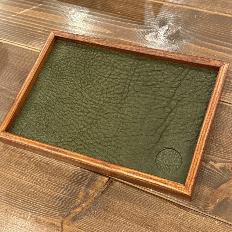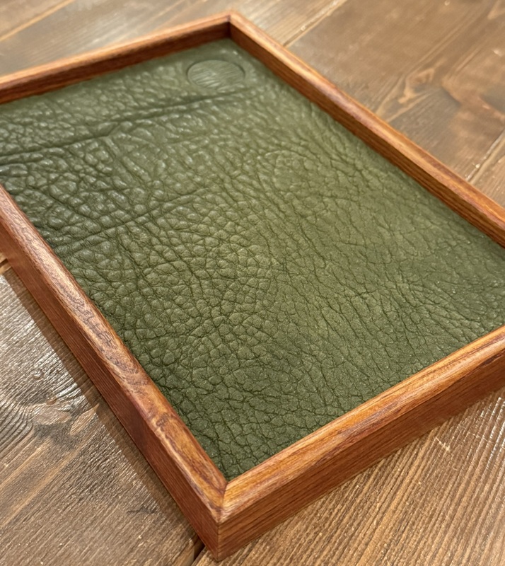 天然木と4mm厚のオイルドグレインレザーで仕上げたアクセサリートレーとなります。ウォッチトレーとしても大変おすすめです。