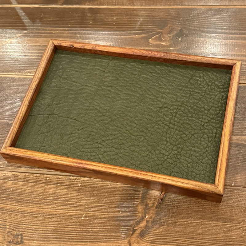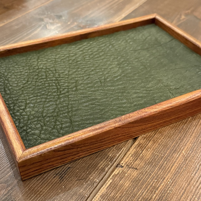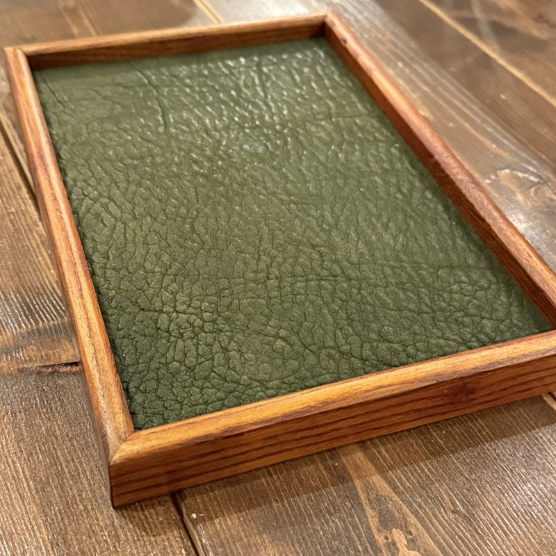 天然木と4mm厚のオイルドグレインレザーで仕上げたアクセサリートレーとなります。ウォッチトレーとしても大変おすすめです。