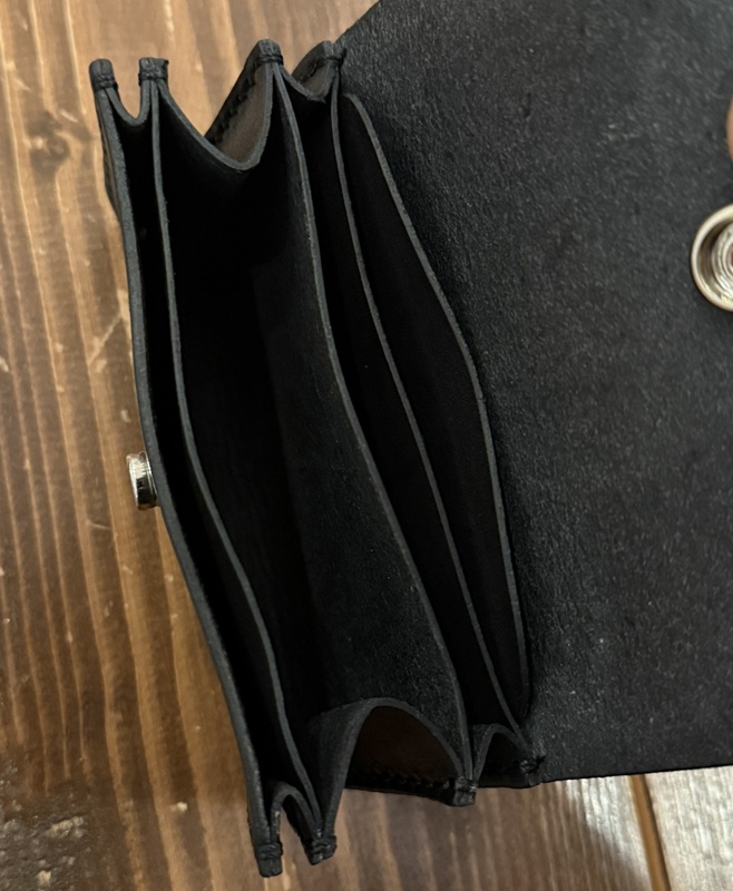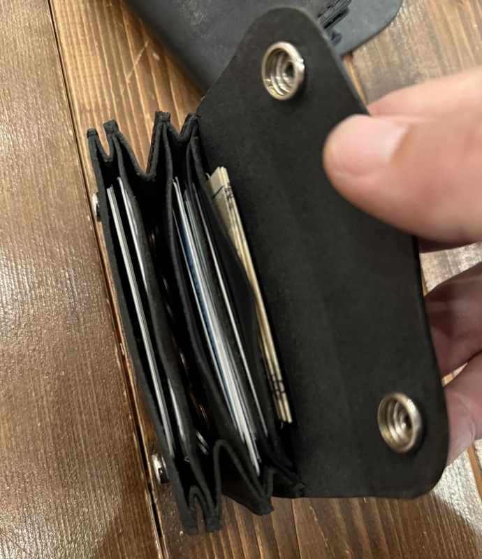 お札は折りたたんで収納するタイプの財布ですので、お札を折りたたみたくない方には不向きかと思われます。